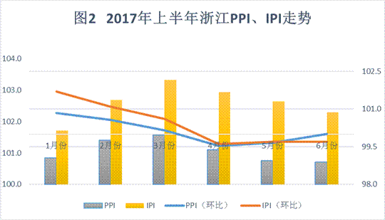 2017年上半年浙江PPI、IPI分化程度与全国比较